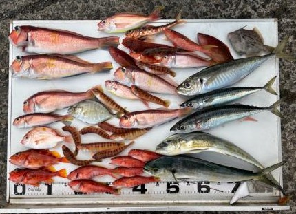 サバ・ヒメコダイ・ベラ・トラギス・アヤメカサゴ・シイラ等種類色々と釣れております!