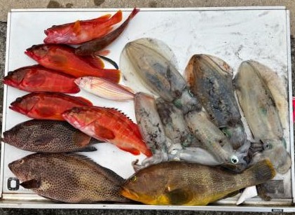 KY丸さんはアカハタ・アオハタ・オオモンハタ・イトヨリダイ・ホウボウ・アオリイカをゲット!