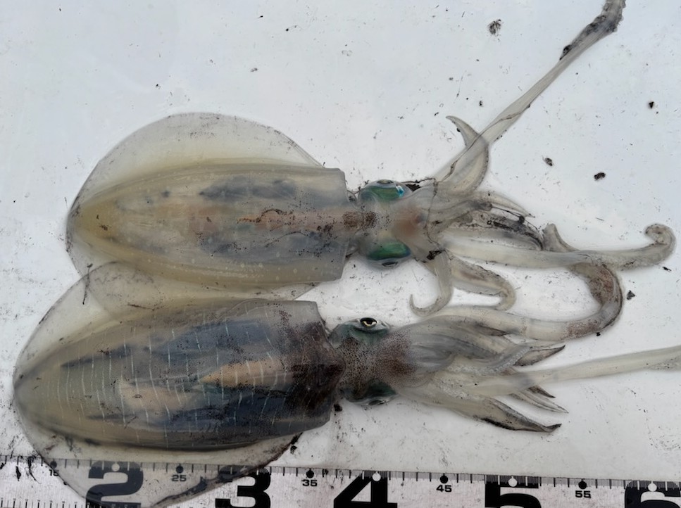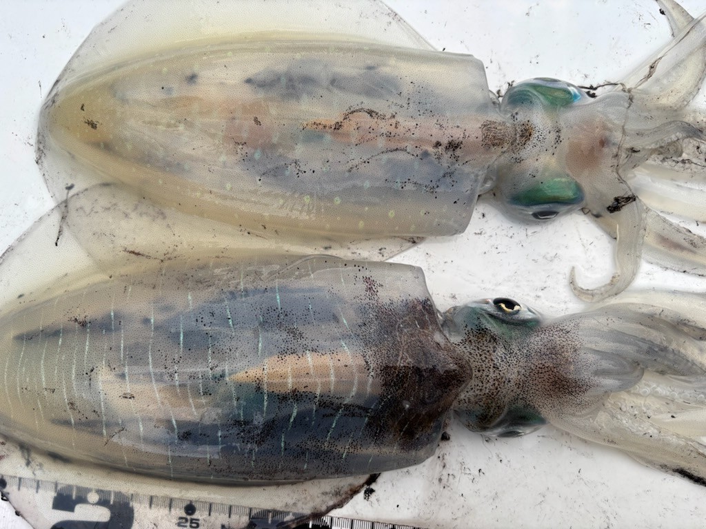 皆様アオリイカのオスとメスの見分け方って判りますか??ちょっと判りずらいのですが、上のドット柄がメス・